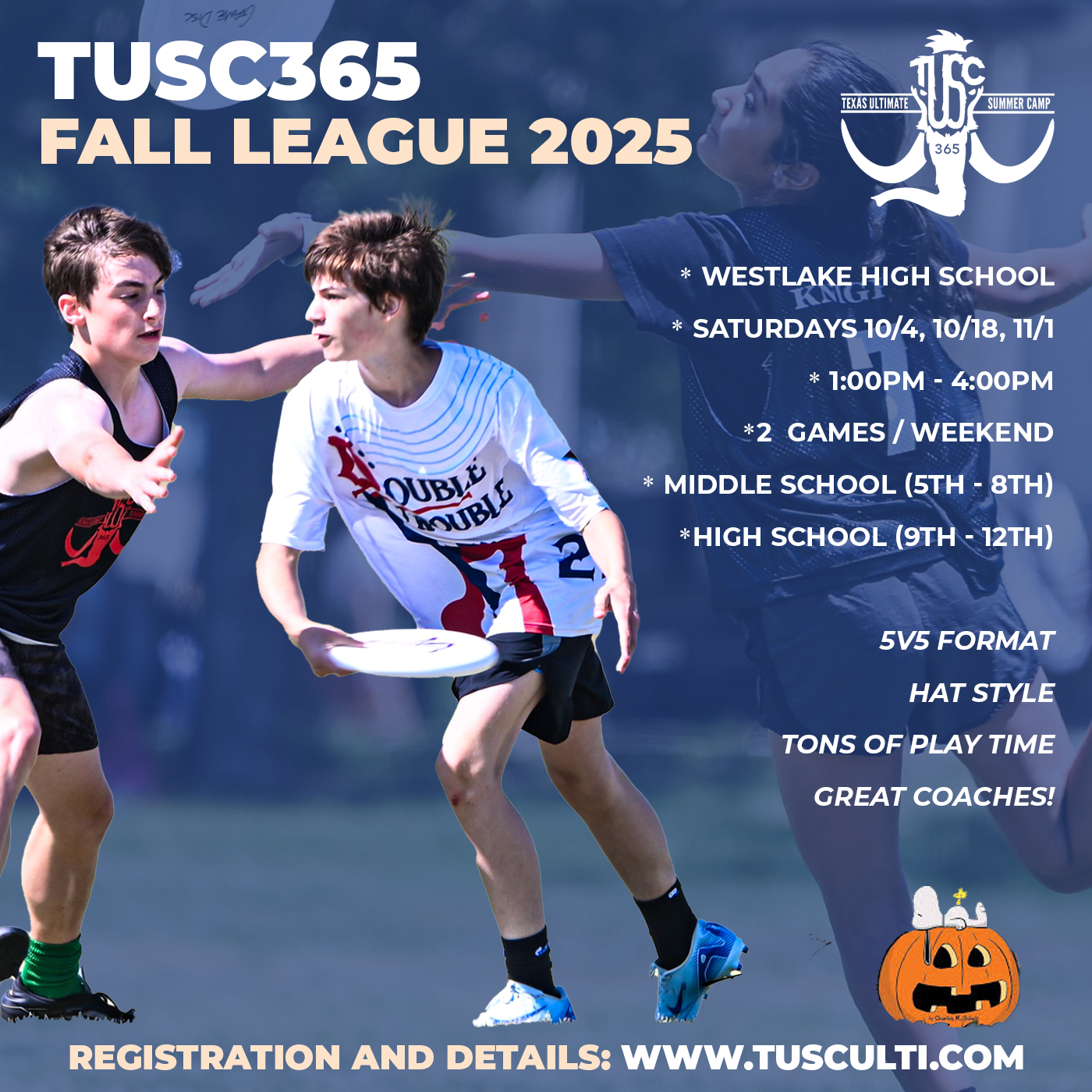 TUSC365 5v5 Tournament: November 15th at Northeast Metro Park (Pflugerville). Flexible team arrangements to accommodate playing with your school teammates OR as a “free agent”! Details and registration coming soon HERE!